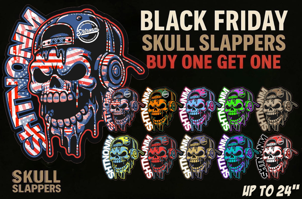 THE NEW SKULL SLAPPERS ARE THE F*KING TRUTH!! AVAILABLE IN A WHOLE GANG OF SIZES AND COLORS! GET YOU ONE OR 48 TODAY :)